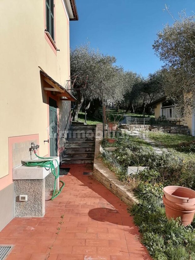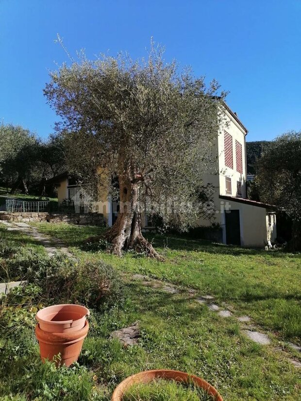 Alle spalle del borgo di Cavi, a pochi minuti di auto dal mare e a soli 2 km da Sestri Levante, vendesi Villa monofamiliare con splendida vista sul Golfo del Tigullio e sugli uliveti della prima collina. Disposta su due livelli, al piano terra troviamo salone di ingresso con caminetto , saletta tv, cucina abitabile, altra stanza con divano letto, bagno. Una scala interna conduce al piano superiore composto da sala centrale che funge da disimpegno e dà accesso alle tre camere da letto e al secondo bagno. Di pertinenza con accesso dalla corte esterna abbiamo una dependance costituita da monolocale con angolo cottura e bagno, ideale per ospitare amici e parenti, una ampia cantina e il locale caldaia. La casa è in ottimo stato di manutenzione sia esterno che interno, dotata di pannelli solari per produzione di acqua calda ed energia elettrica. Viene venduta, se interessa, parzialmente arredata. La proprietà comprende inoltre uno splendido giardino piantumato, dove è possibile installare una piscina interrata , numerosi posti auto ed infine un fabbricato ex fienile di grande valore, per cui esiste un progetto approvato per cambio di destinazione d'uso in abitazione. Attualmente è costituito al piano terra da area coperta uso taverna con forno a legna, magazzino, locale attrezzi, legnaia e al piano superiore da grande locale open space con bagno. L'intera proprietà rappresenta una soluzione abitativa non facile da trovare ed ideale anche per chi volesse avviare attività ricettiva . Per approfondimenti ed altre foto e/o planimetrie contattare l'agenzia.
